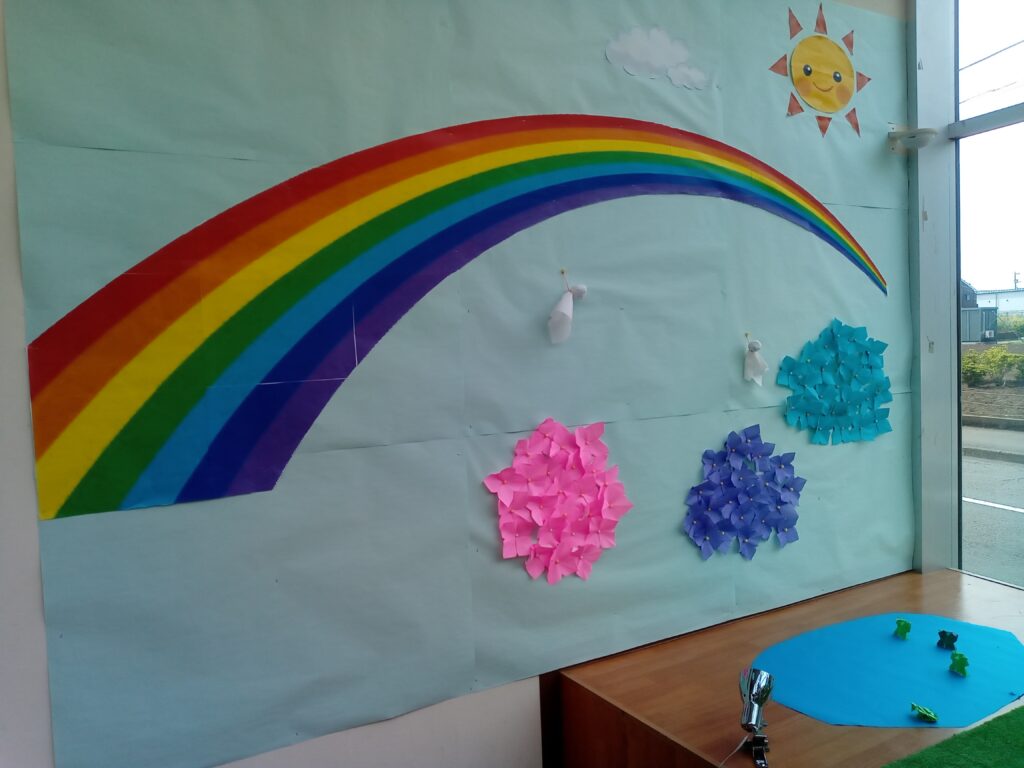 アジサイの花を社員みんなで折り紙を折って作りました。