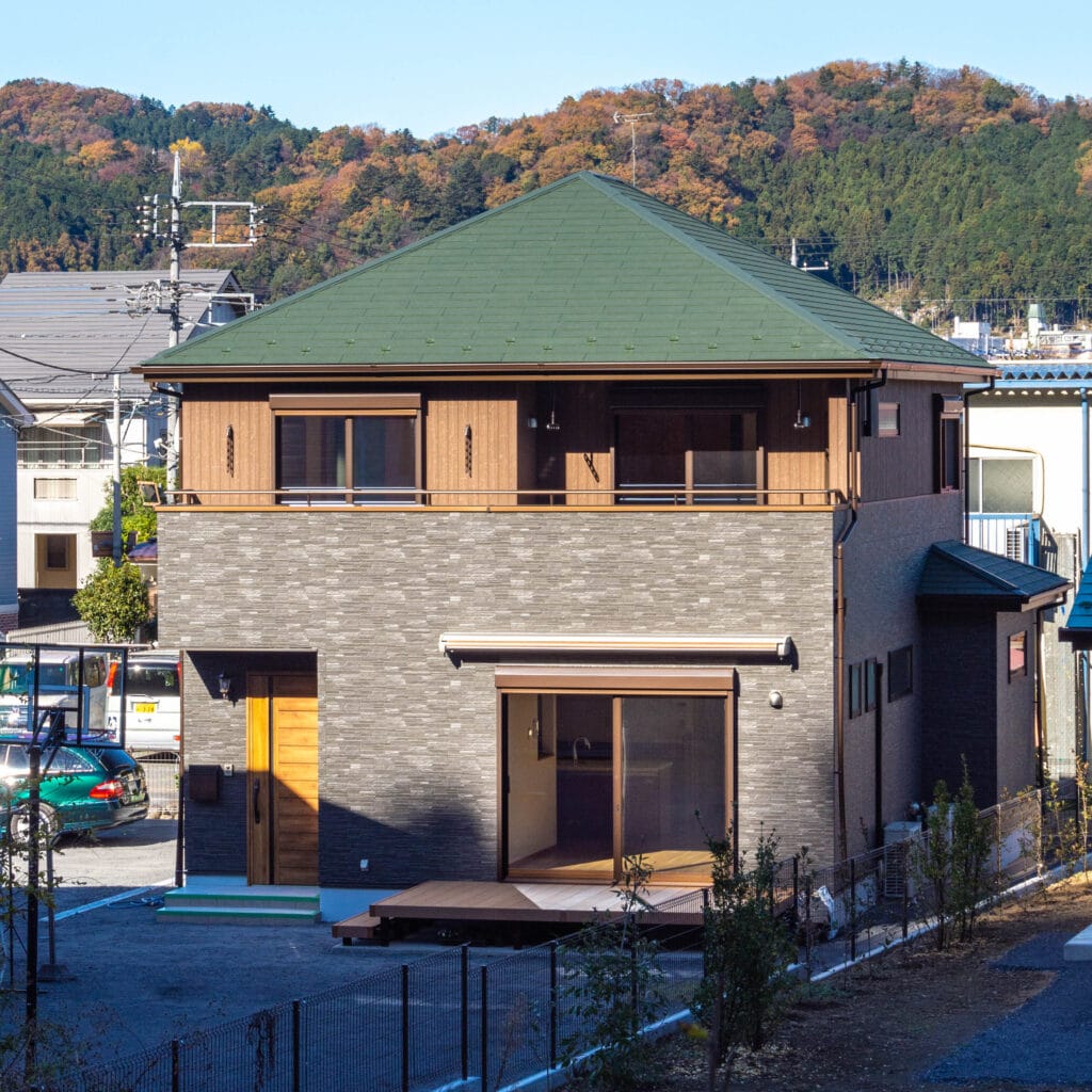 家族で料理を楽しめるフルフラットのペニンシュラキッチンがこだわりです。水回りの設備はすべて共有で、トイレは3つに分けました。三世帯家族7人で暮らす、家族の気配を感じられる明るいお家になりました。